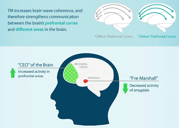 Transcendental Meditation allows the nervous system to access a special quality of rest different from ordinary rest and relaxation - and in some ways deeper than sleep. It allows the brain to break out of the cycle of stress. The frontal lobes of the brain are then able to coordinate mind and emotions, and you see life in perspective once again.